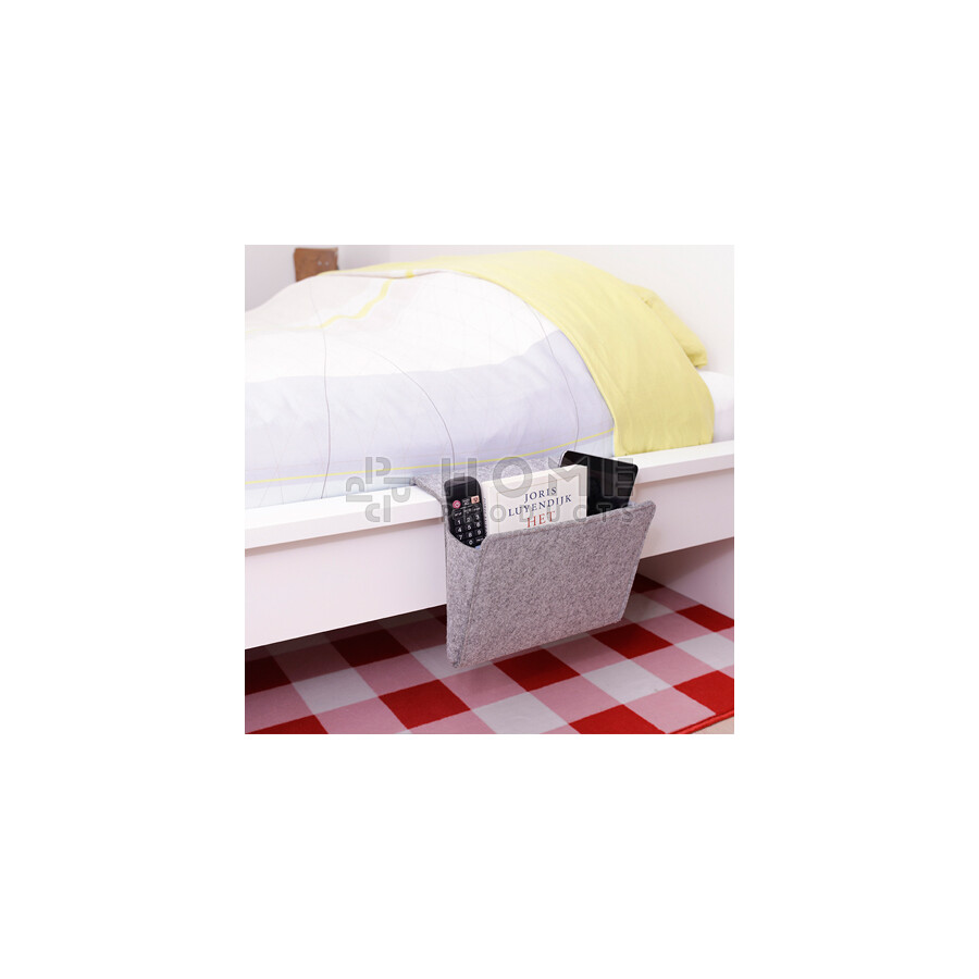 Deze zachte en stijlvolle zak is de ideale plaats om je spullen te bewaren die je eenvoudig vanuit je bed wilt kunnen pakken. Denk hierbij aan de afstandsbediening, je iPad, je favoriete boek, etc. Door de buigbare "haak/flap" kan hij ook tussen het Boxspring matras geschoven worden. Hij past dus overal!
